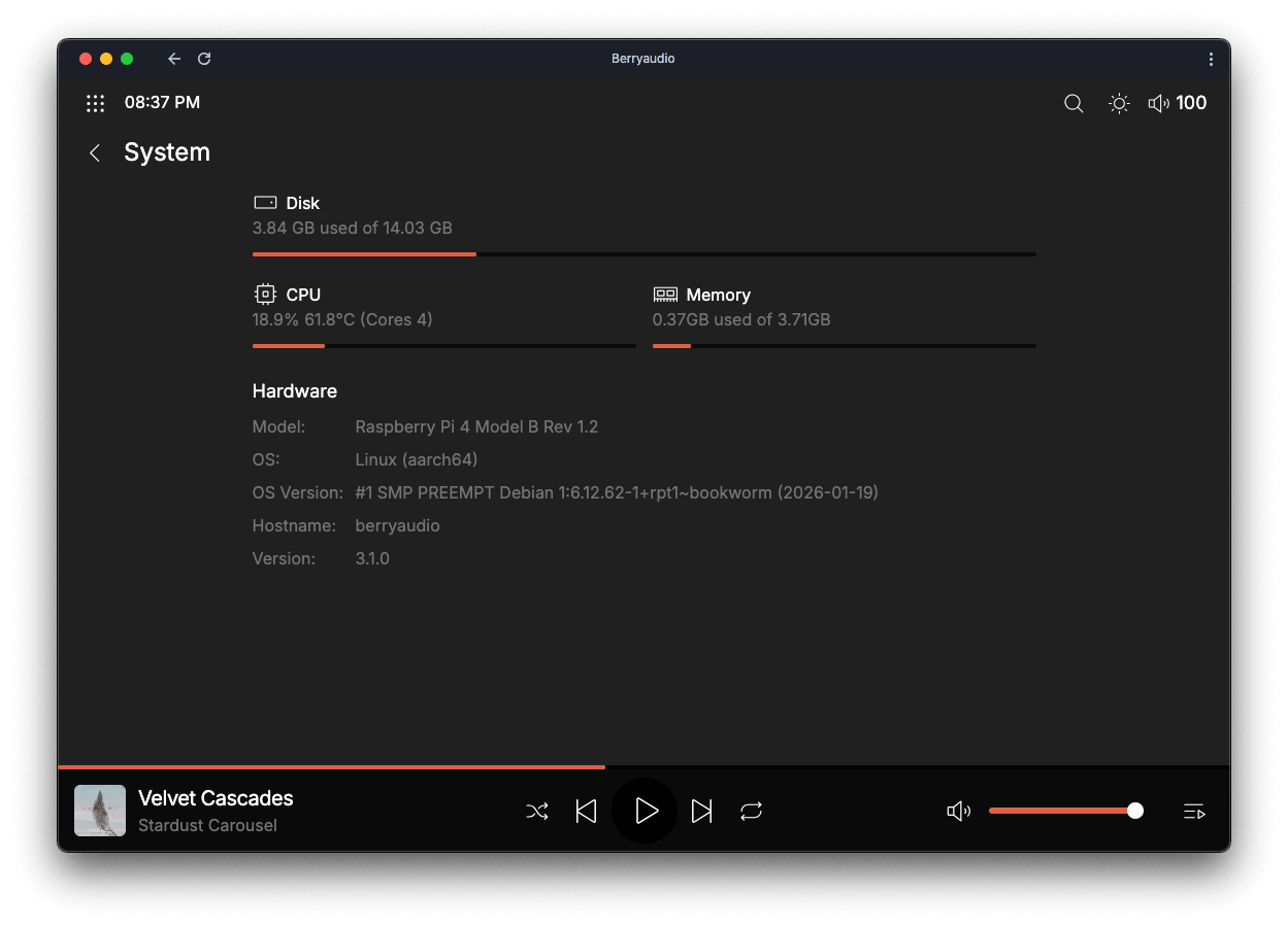 For Raspberry Pi — featuring Spotify Connect, AirPlay 2, Bluetooth RX/TX, CamillaDSP, Internet Radio and Multiroom audio with a touch-optimized interface designed for pure listening.