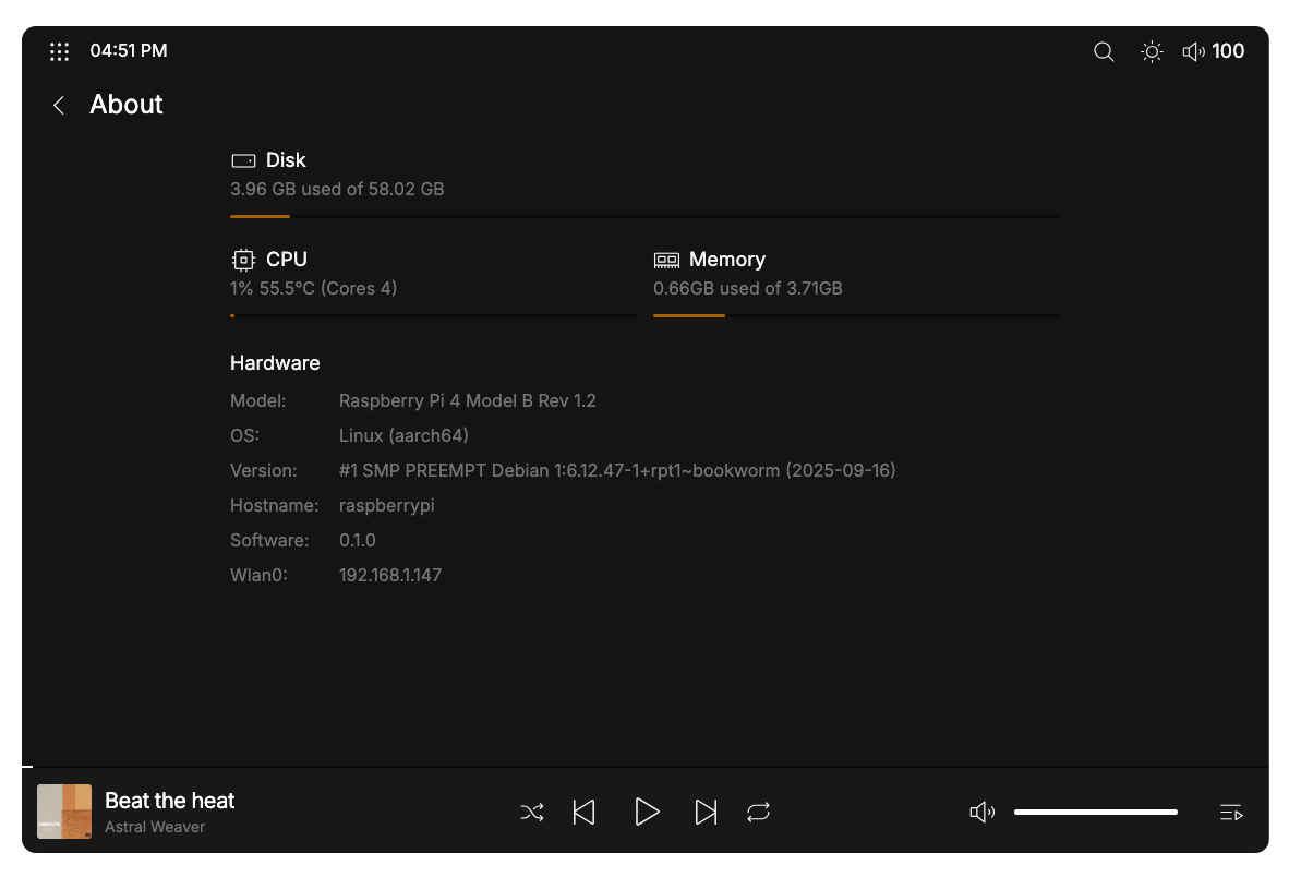 Built using gstreamer, python, reactjs & typescript, designed for smooth performance across touch displays, Building your own custom music system headless or with an attached display Or turn your old amp / music system into an fully streaming device